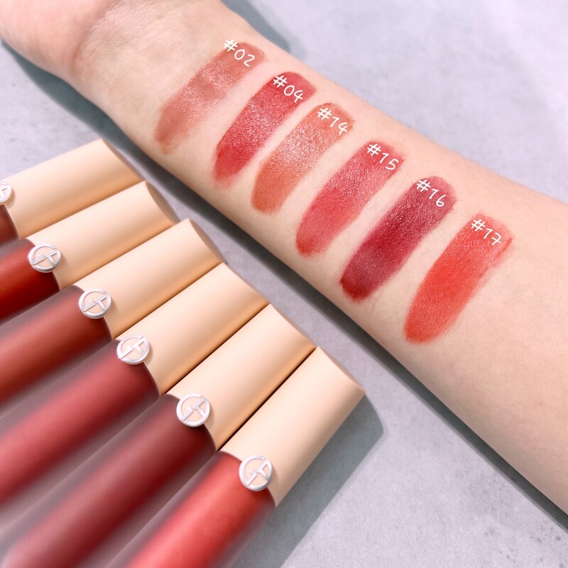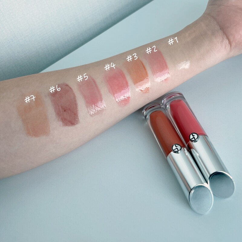 Giorgio Armani奢华丝缎订製水唇釉裸粉限定版(6色)手部试色。 裸粉限定版一共推出六色