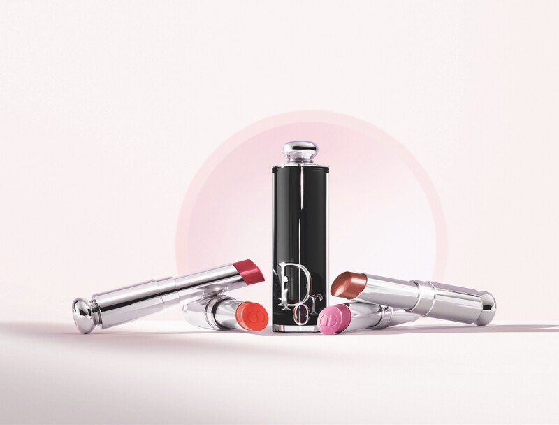 Dior迪奥瘾诱唇膏2024年产品情境图。 全球创意形象总监Peter Philips为《迪奥瘾诱唇膏》悉心打造的5款全新色选,将明亮饱和的色调注入温柔粉嫩的粉彩风格,从显白的西柚橘、浪漫的玫瑰粉到时尚的裸棕色都有。