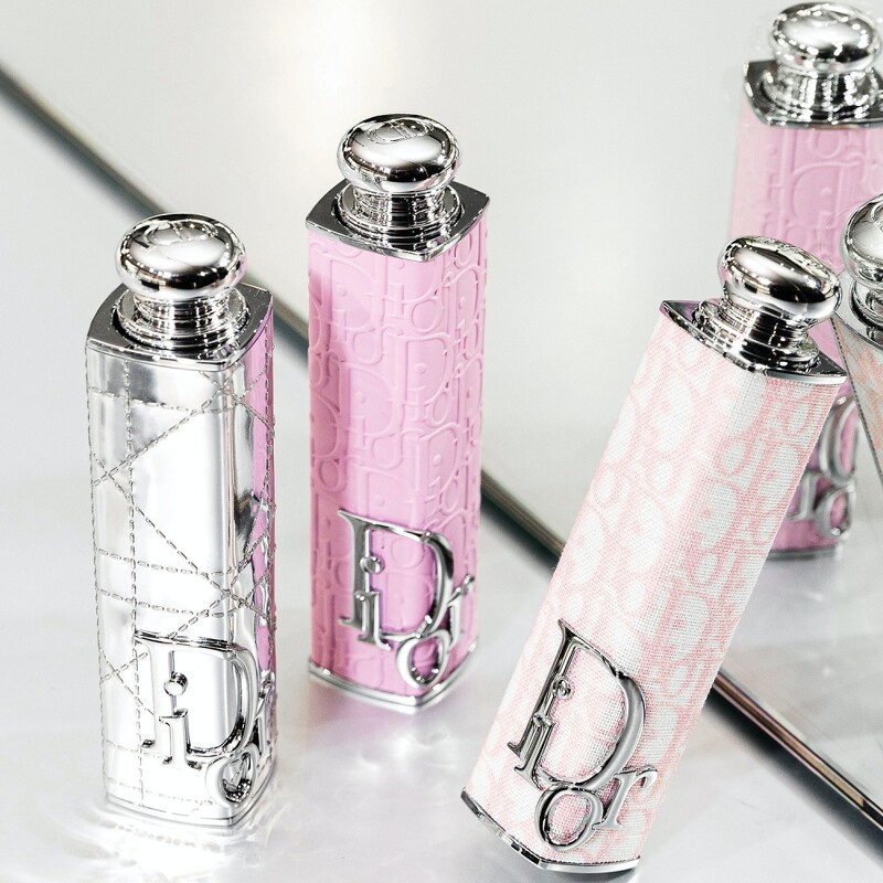 Dior迪奥瘾诱唇膏外壳-粉红高订缇花,NT1,700。Dior迪奥瘾诱唇膏外壳-浪漫花瓣粉、藤格金属银,NT1,050 1.Pink Oblique粉红高订缇花:满缀DIOR Oblique缇花花纹,与精品包使用相同面料设计。以温柔粉嫩的淡粉色搭配米白色织布呈现经典老花图腾,再由深浅叠加刺绣技术交织出渐层效果,更显典雅迷人。