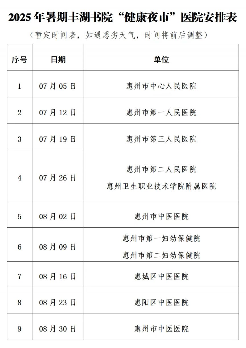 截至我所知的信息,以下是一个假设性的活动安排,因为具体的活动详情需要以官方发布的信息为准。以下是一个可能的2025年惠州暑假健康夜市的安排:
